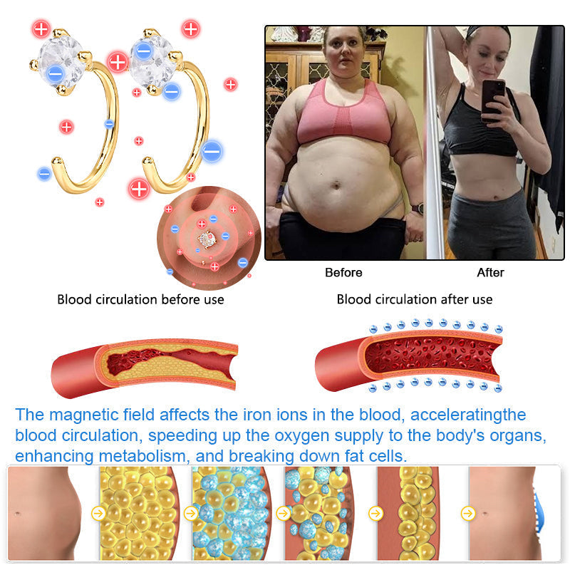 The National Institutes of Health reports that magnets can stimulate faster metabolism and accelerate the breakdown of fat cells by enhancing the body's natural energy field. By enhancing the effect of the magnetic field. the magnetic therapy effect can penetrate deep into the skin to break down deep fat. help burn fat and increase skin softness.