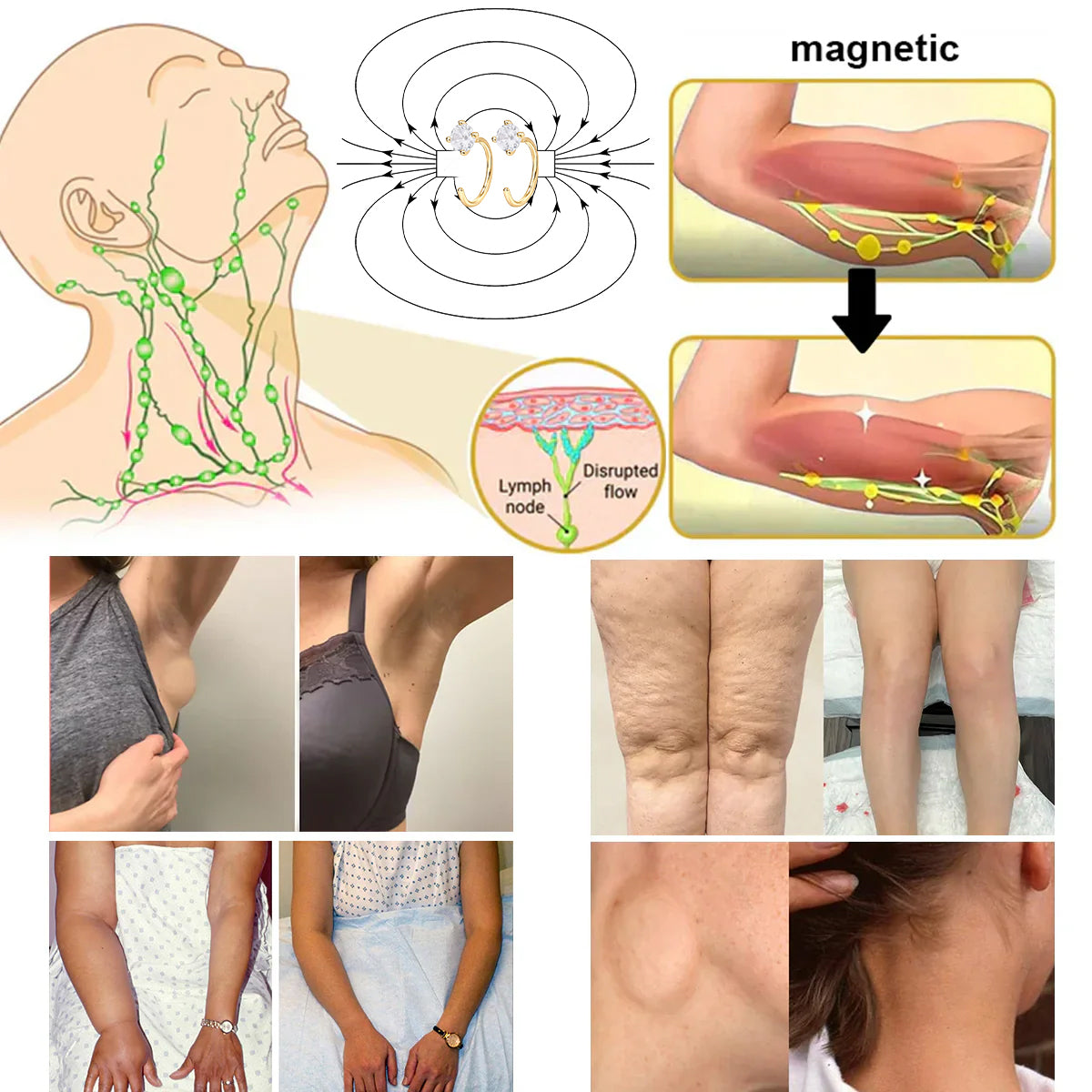 Lymphatics are distributed throughout the body to maintain human health. Once the lymph is blocked. lymphedema will form at the lymph nodes. which often occurs in the armpits. neck and limbs. Laboratory tests have shown that magnetic therapy reduces the deposition of fluid. fat. hyaluronic acid and protein. reduces swelling. eliminates edema. treats and prevents lipomas and cysts. and tightens the skin.