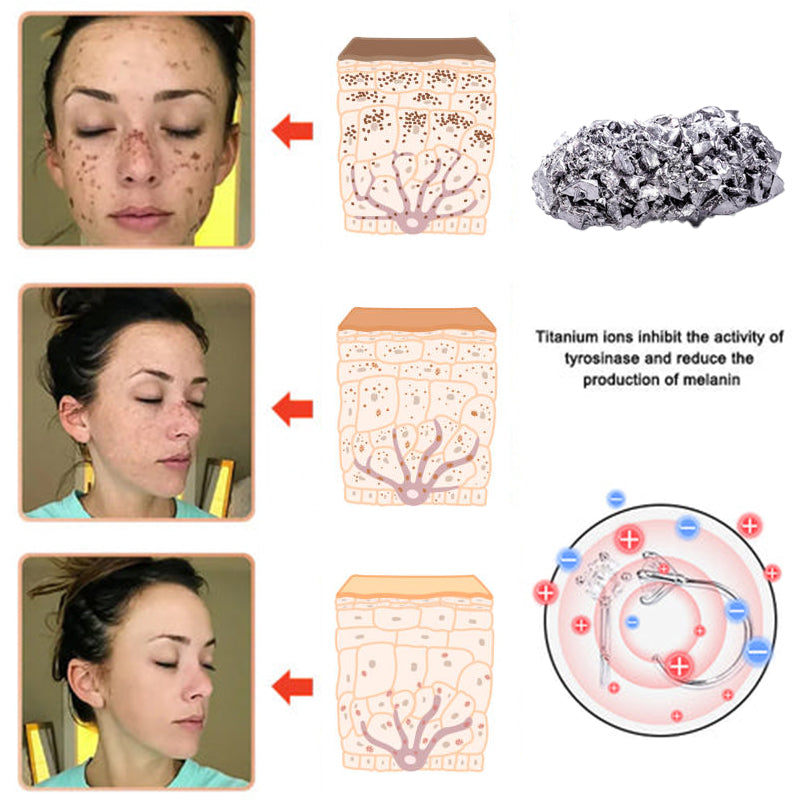 Titanium has a variety of beneficial effects on skin health. especially in reducing dark spots and melanin pigmentation. Titanium can inhibit the activity of tyrosinase. reduce the production of melanin. and prevent the formation of dark spots and pigmentation. Titanium also has the effect of improving skin barrier function and enhancing skin whitening. making the skin tone more even and translucent.