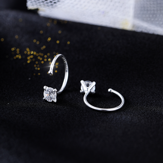 - Insert one end of the lymphatic magnetic therapy earring into the ear hole, pass it through from the front, and finally make the back of the diamond touch the front ear.