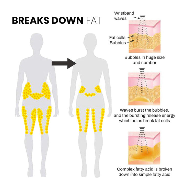 Ultrasonic has the ability to enter the area of fat deposition via the skin and kill specific fat cells. Under the influence of ultrasonic vibrations, the fat cells are broken down and liquefied. Also help blood flows to organs and tissues throughout the body.Ā Through waves which the band emits it helps dissolve blockages (stenosis) and abnormalities like plaque or emboli.